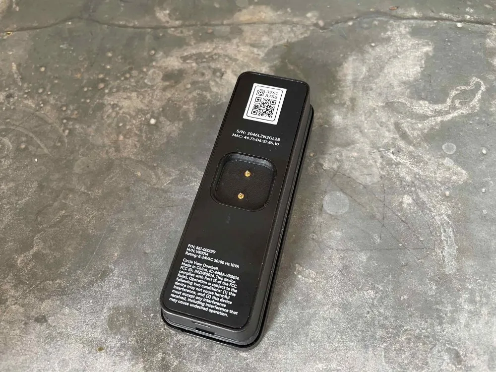背面には、HomeKit コードと、既存 (または新規) のドアベル セットアップの配線を使用してドアベルを標準マウントまたは角度付きマウントに接続するための 2 つのピンがあります。