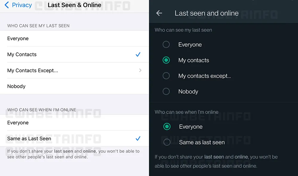 ご覧のとおり、これにより、「全員」、「誰もいない」、「連絡先のみ」の中から選択できるほか、特定の連絡先に対してステータスを非表示にするオプションも提供されます。