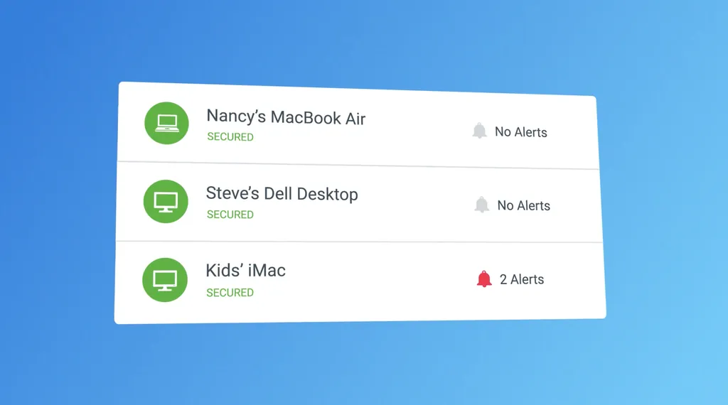 これはパンデミックの状況下では特に有用であり、通常はビジネス向けソフトウェアにのみ搭載されている機能です。リモートサポートに必要なのは、WebブラウザまたはSophos Homeモバイルアプリだけです。Sophos Homeのアラート機能を使えば、たとえ家族がデバイスをきちんと管理できていないとしても、常に最新の状態に保つことができます。