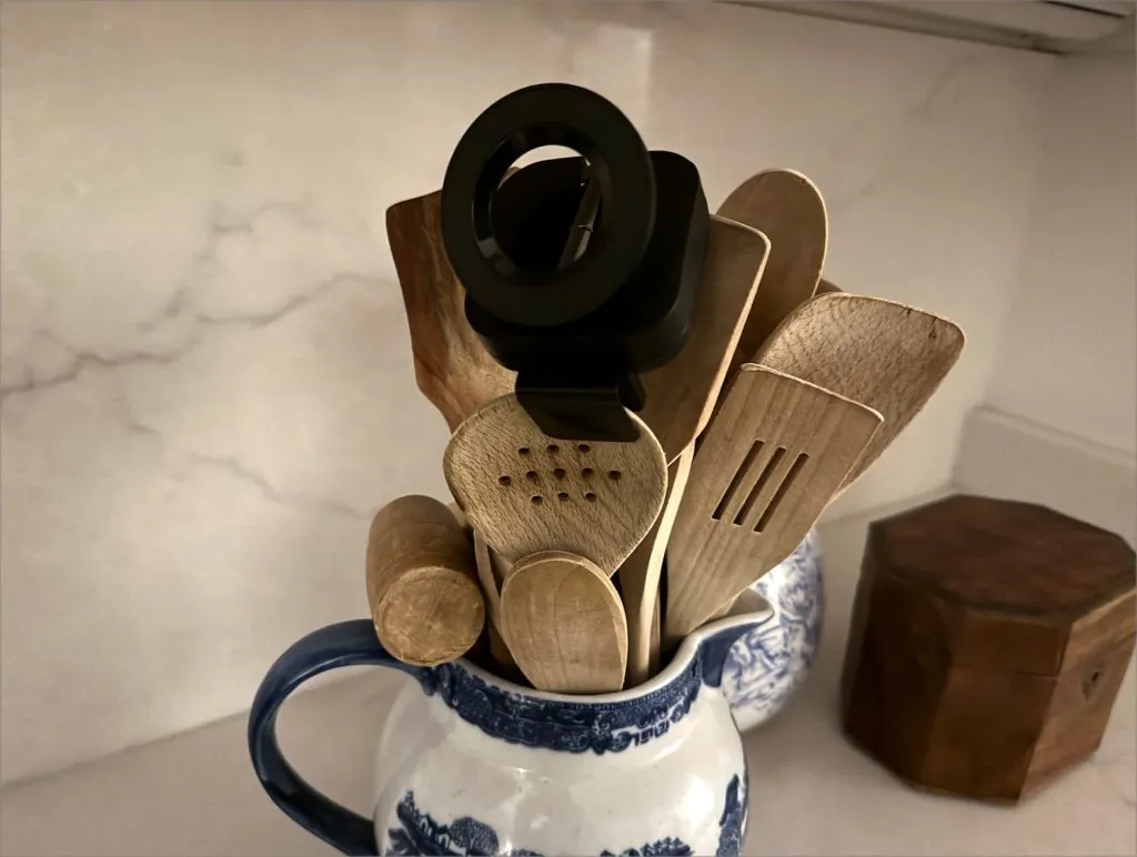 もう一つの活用方法は、料理です。スタンドをキッチンカウンターにクリップで留めれば、iPhoneを適切な高さに保ちながら、レシピや料理動画を見ながら操作できます。