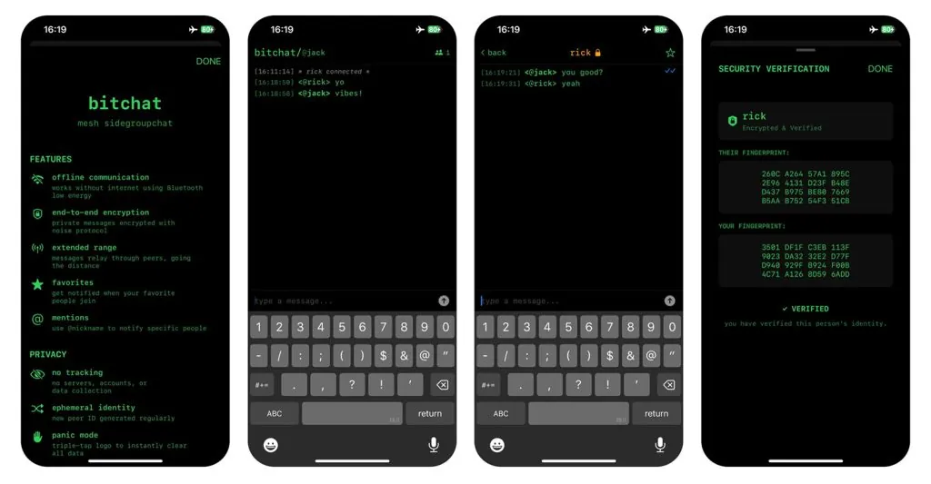 プライバシー重視の分散型アプローチを採用しているため、Bitchat Meshにはサーバー、アカウント、ユーザー情報は一切存在せず、データ収集も一切行われません。これだけでも、一部の国では規制当局の目を釘付けにするかもしれませんが、それはまた別の機会にお話ししましょう。